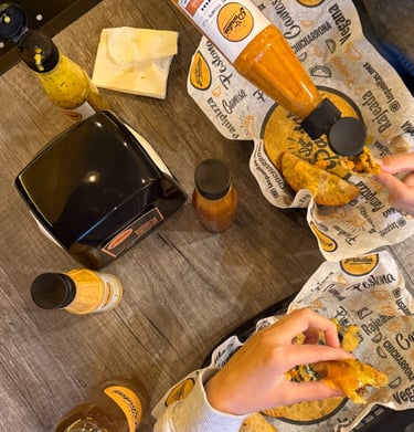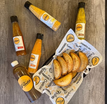 Descubre nuestras salsas únicas que realzan cada empanada deliciosa.